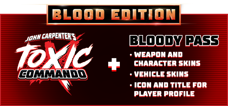 The Blood Edition for John Carpenter's Toxic Commando includes the base game, the Bloody Season Pass and its Cosmetic Pack.